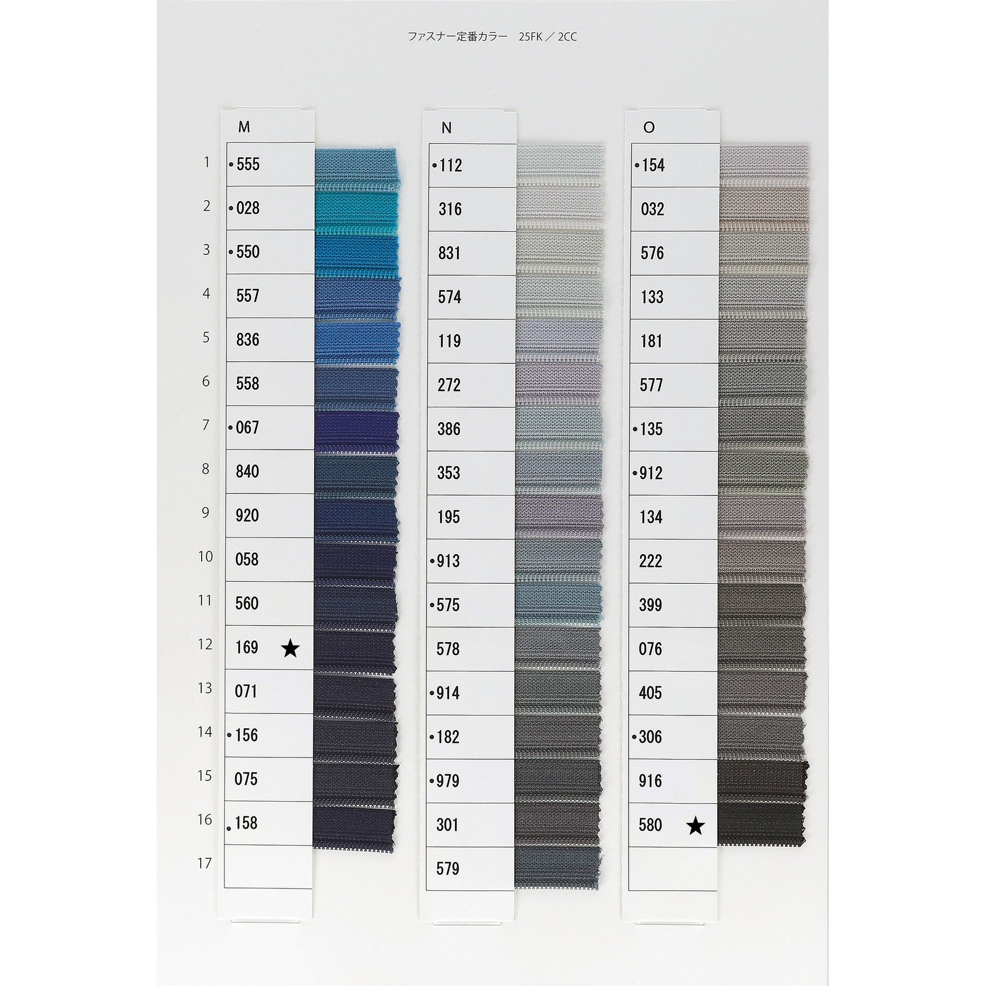 ※掲載外ファスナーをご希望の場合は、こちらからお願いいたします。