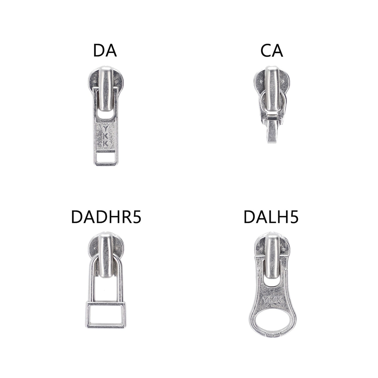 こちらはサンプル依頼用(10本まで)の商品ページです。サンプル加工対応カラーは商品画像をご確認ください。3号サイズ・エレメントカラーが洋白の金属ファスナーです。止め仕様で、DALH5(C5)スライダー付きの金属ファスナーになります。