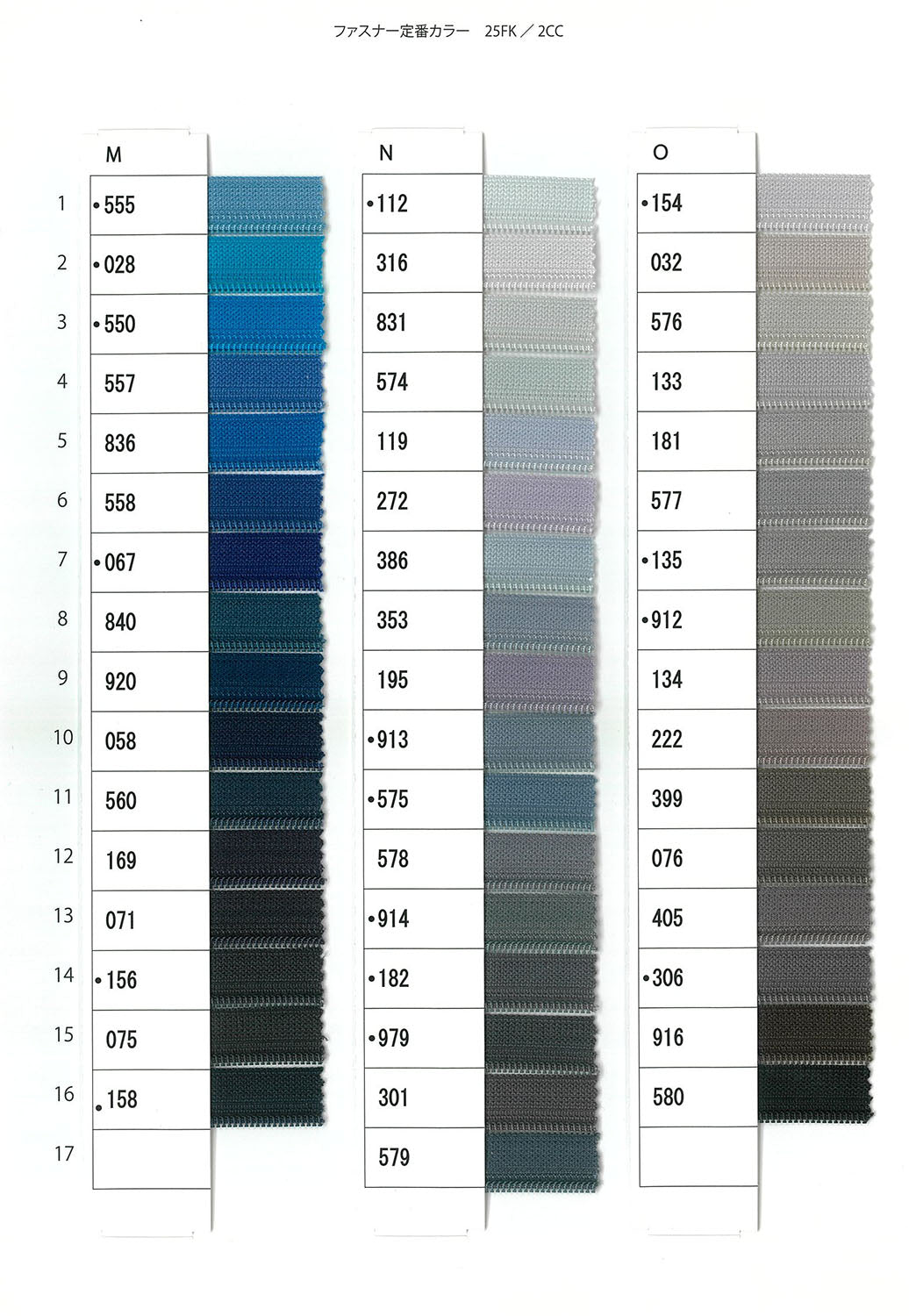 ※掲載外ファスナーをご希望の場合は、こちらからお願いいたします。